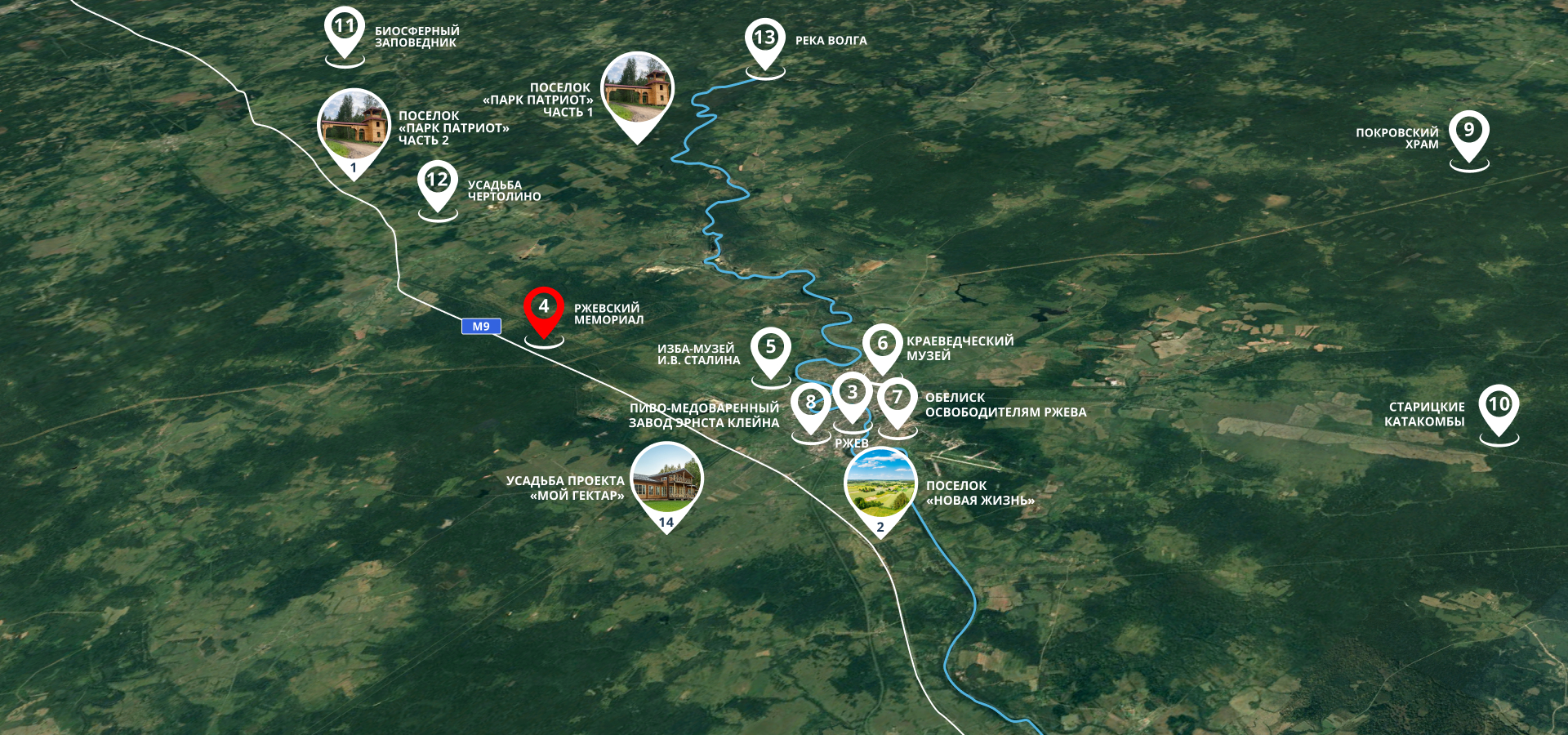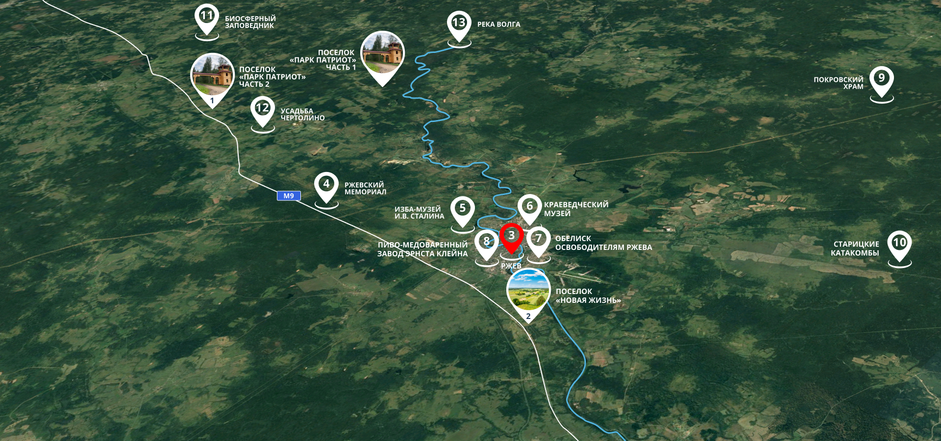 В 30 км от поселка во Ржеве, городе воинской славы, множество достопримечательностей, которые стоит посетить и посмотреть.